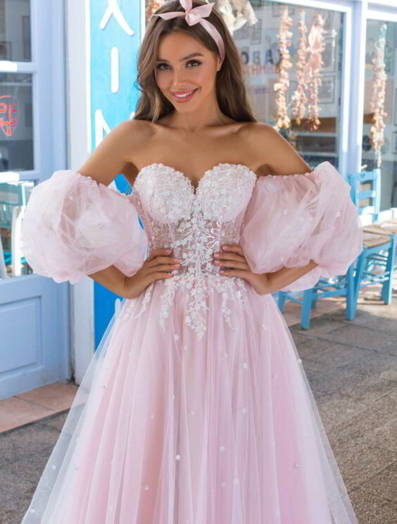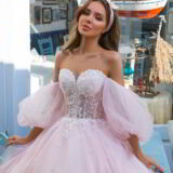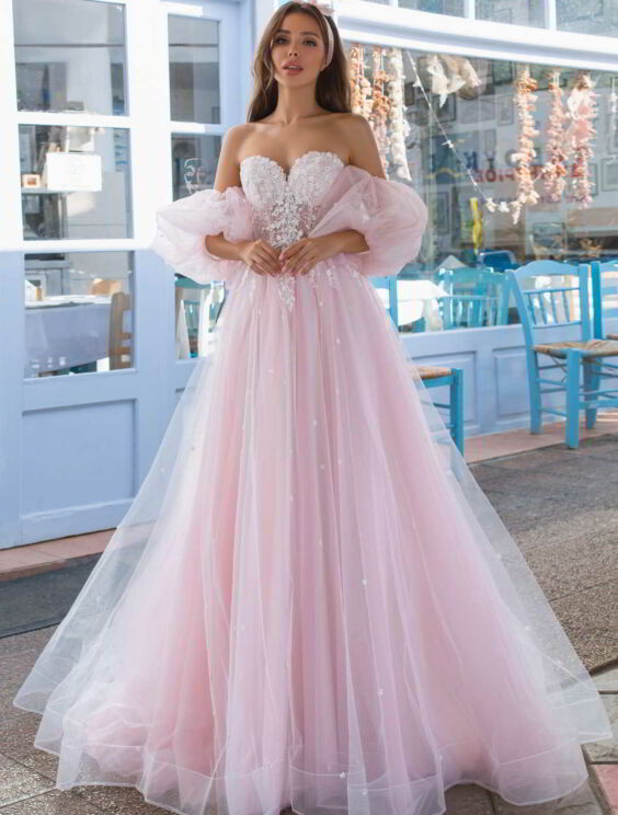abito da sposa rosa economico.Bellissimo vestito da sposa color rosa ,corpetto a cuore ricamato in pizzo e perline.Manica staccabile.morbida gonna con leggero strascico.