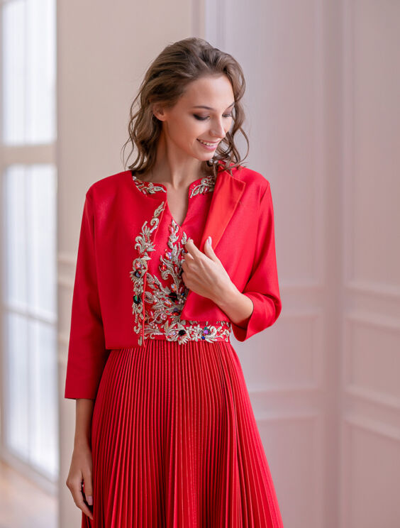 abito rosso con giacca