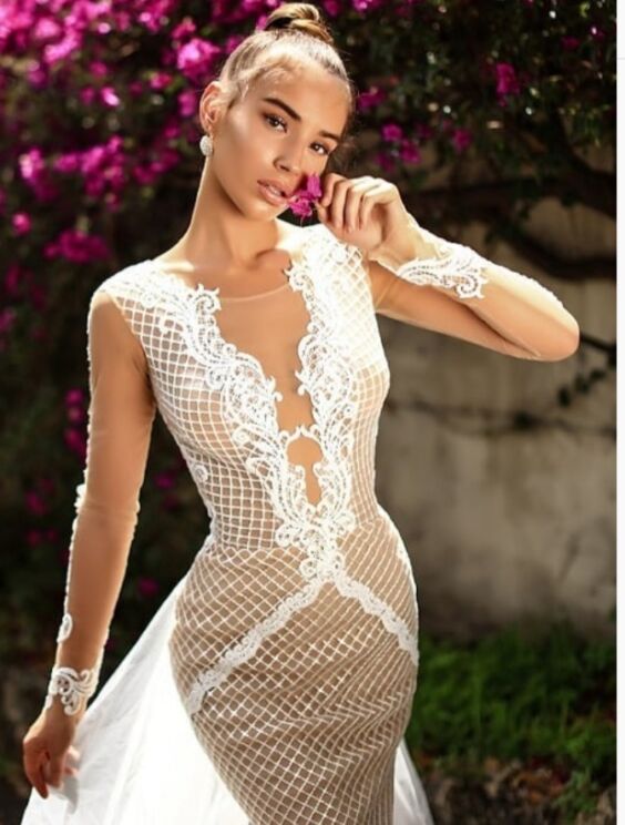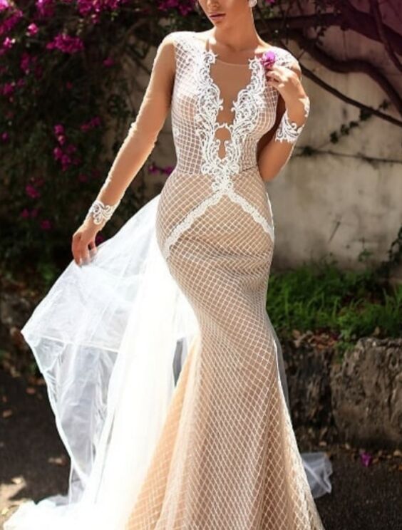 adorabile sensualissimo abito in stile sirena e particolare pizzo