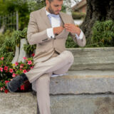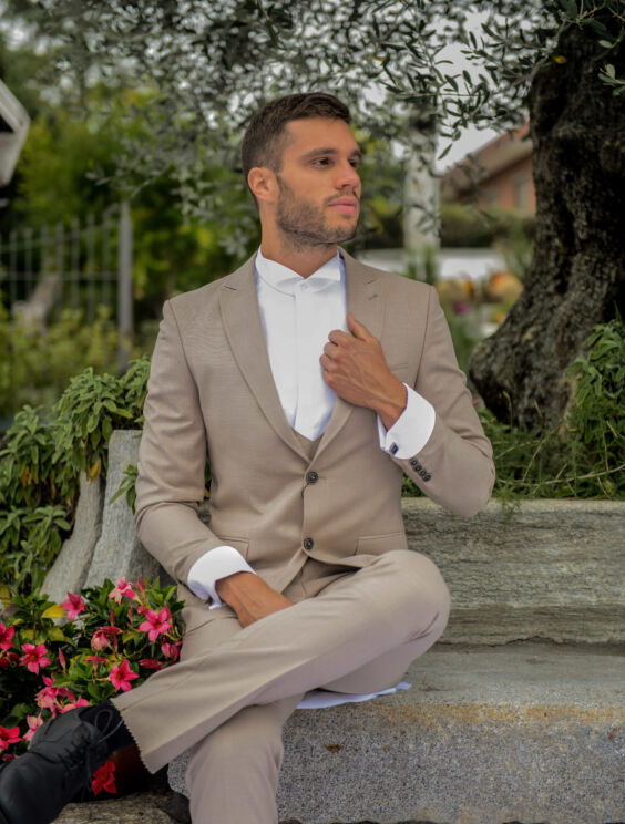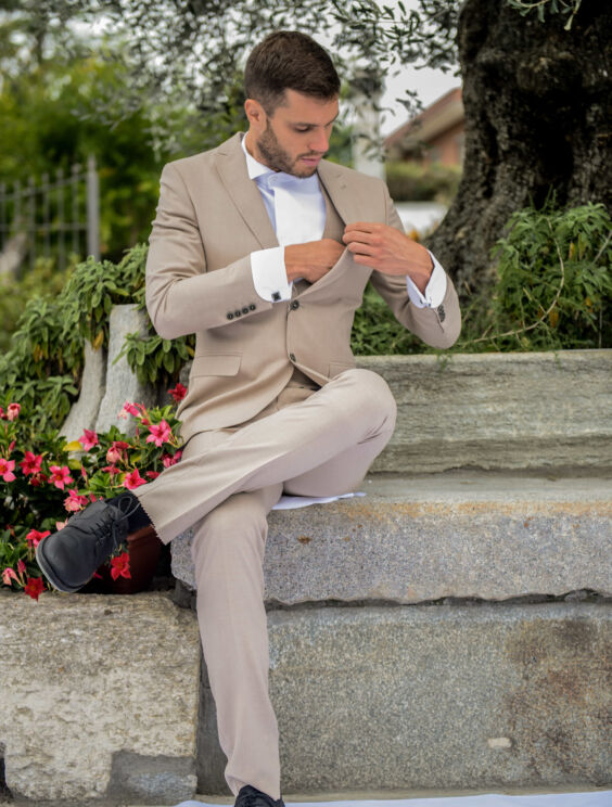 completo leggero in lino beige chiaro