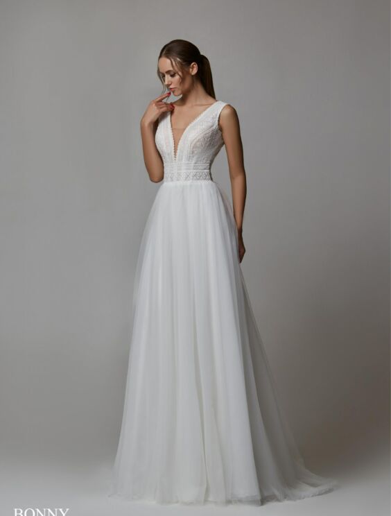 elegante abito bonny con corpetto in pizzo e gonna morbida