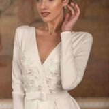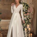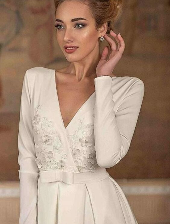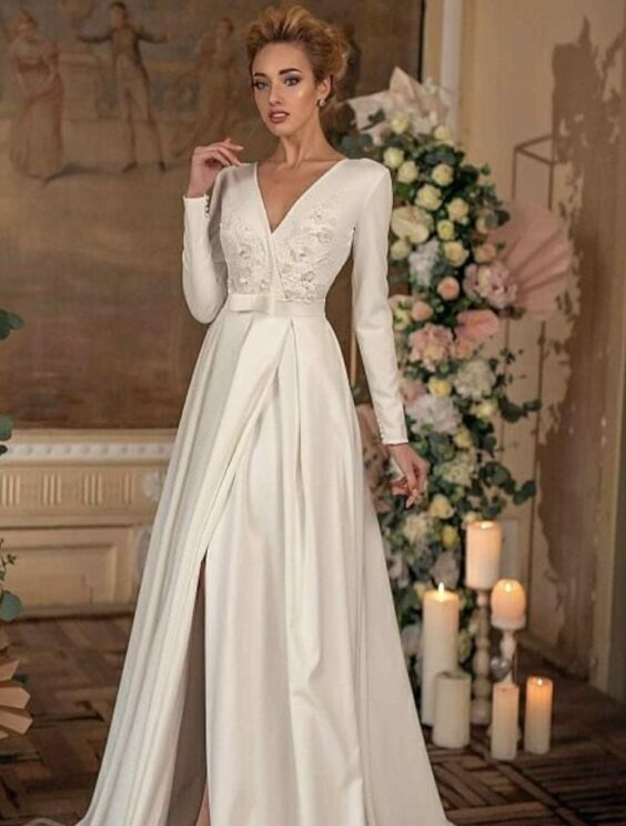 elegante abito da sposa ricamato davanti e scollato dietro con spacco