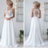 elegante e scivoloso abito da sposa con schiena e corpetto in pizzo