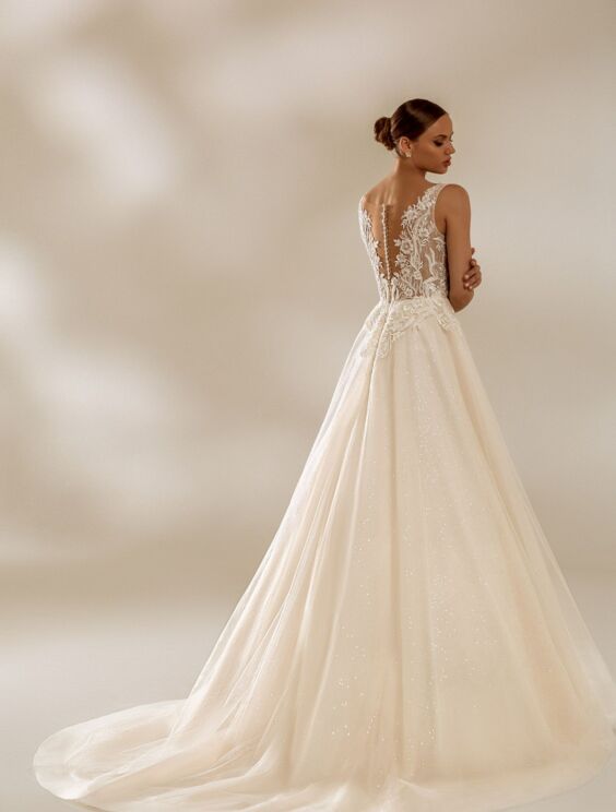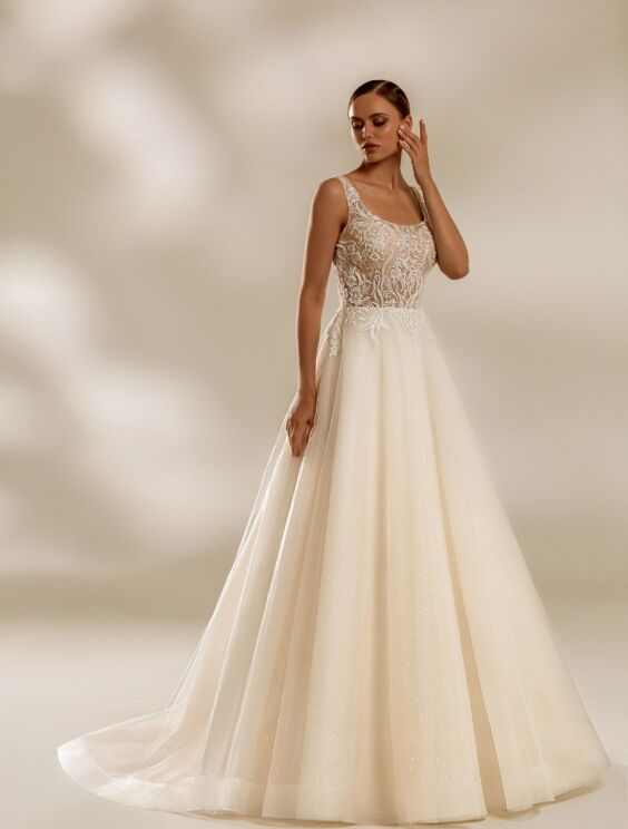 favoloso abito dolores gonna luminosa e corpetto ricamato