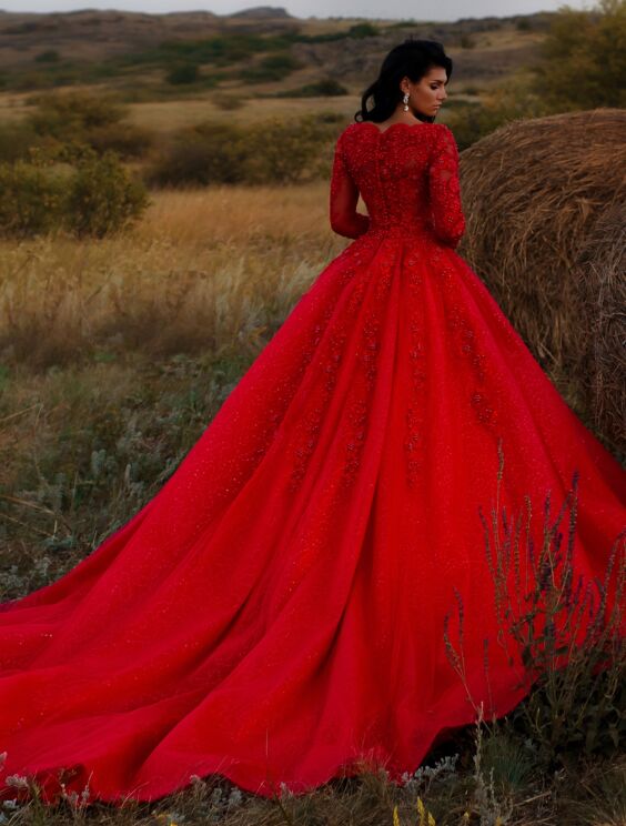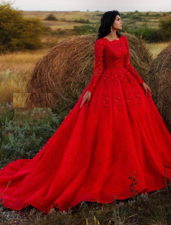 magnifico abito rosso da principessa molto ricamato