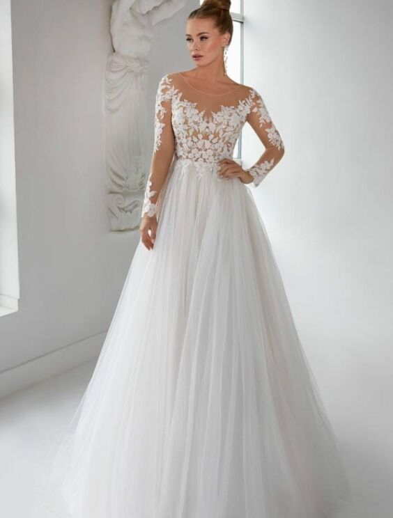sensuale abito con maniche ricamato e gonna morbida