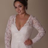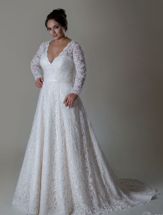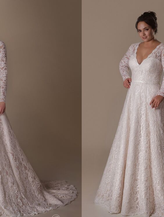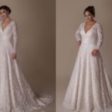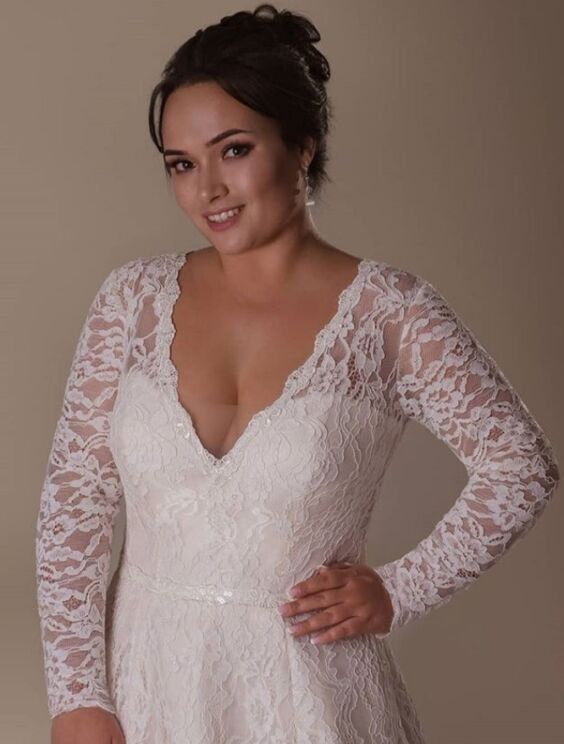 vestito da sposa in classico pizzo liscio.Taglio del abito in stile A-line,che vestirà in maniera perfetta qualsiasi taglia dalla piu piccola alla piu grande.abito realizzato interamente in pizzo,scollatura a V.